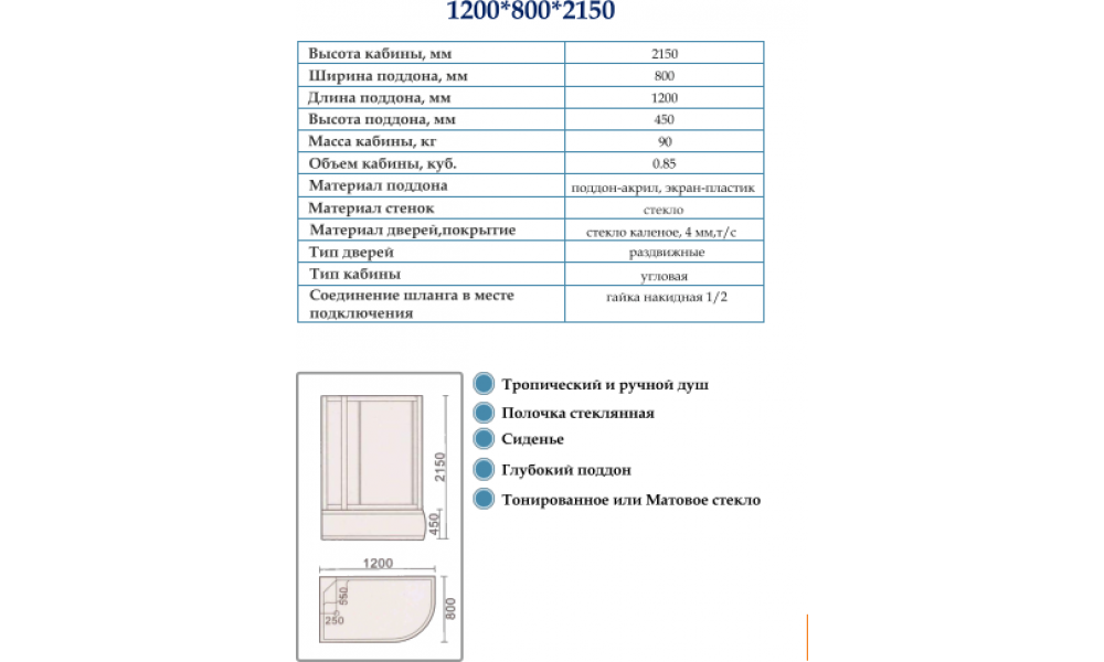 | 45 | тропический и ручной душ, полочка, вытяжка, сидение с опорой под спину |
