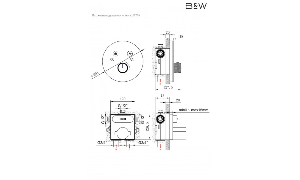 Душевая система встраиваемая Black&White U7776 в цвете Хром, страна производитель: Дания. Обладает строгим, но стильным видом в комбинации с высоким показателем качества.