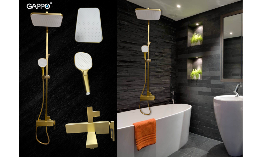 Комплект смесителей для ванной комнаты G1017-3 и G3217-3 в матовом золоте.Создайте гармоничную атмосферу в вашей ванной комнате с комплектом смесителе..