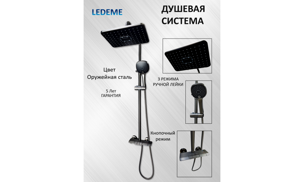 Душевая система кнопочная Ledeme L2418D, Оружейная|Вороненая сталь