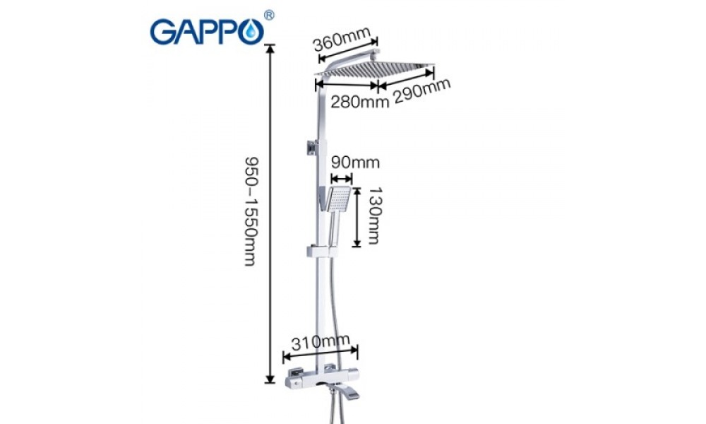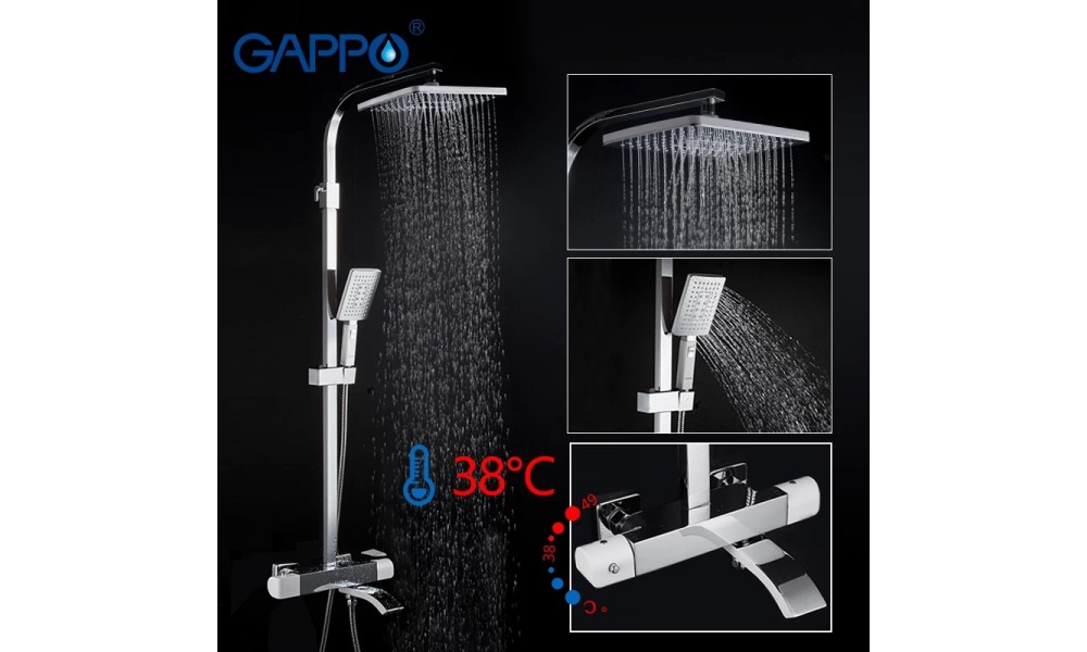 Душевая система с термостатом Gappo G2407-50. В нее входит термостатический смеситель, который позволяет избежать ожога горячей водой или получить ледяной душ. Все благодаря встроенному термостатическому картриджу, он поддерживает постоянную температуру воды, защищая Вас от ее перепадов. Имеет настенный монтаж с высокой стойкой, которая подойдет под любой рост человека, а также поворотный излив для лучшего пользования.