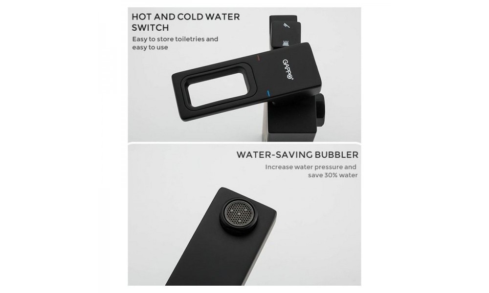Смеситель для умывальника Gappo G1017-6, однорычажный, цвет: Черный, материал: Латунь...