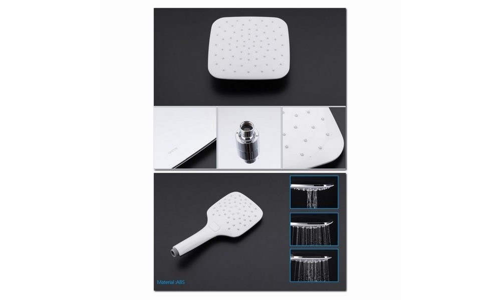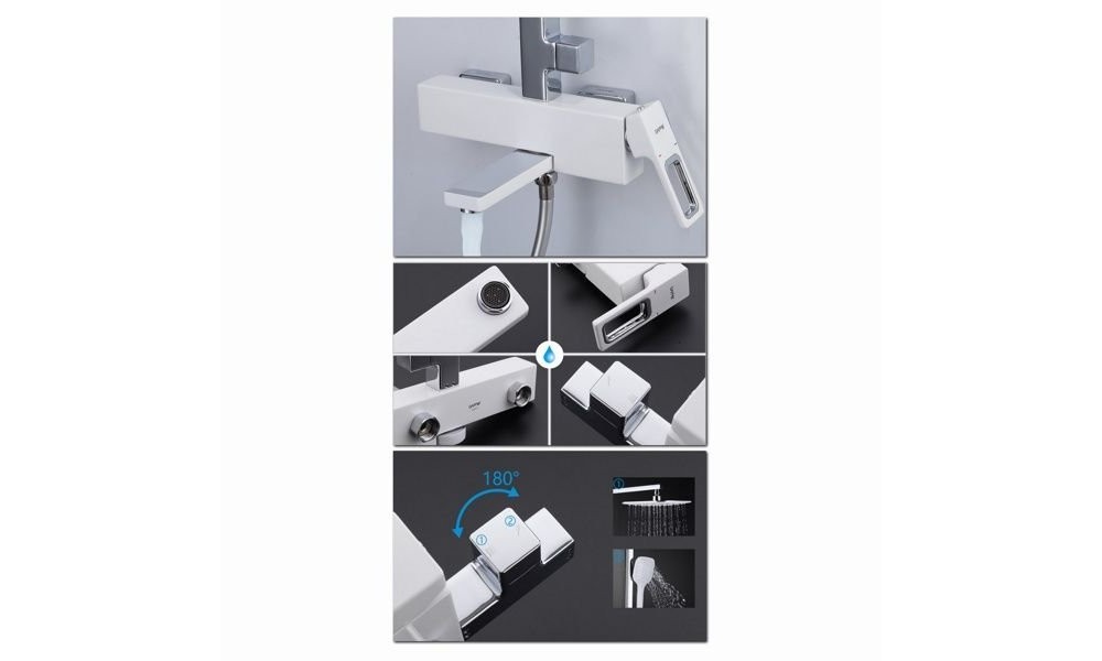 Высокая душевая система Gappo G2417-8 бело-хромированые цвета послужит отличным приобретением в ванную комнату. Смеситель выполнен из 100% латуни с использованием испанского картриджа Sedal, а большая прямоугольная форма смесителя понравится каждому любителю стиля хай-тек. Поворотный излив системы позволит использовать ее более рационально, а многорежимная ручная лейка с функцией массажа всегда будет радовать Вас своими свойствами. Если хотите купить душевую стойку белого цвета, то модель G2417-8 - идеальный вариант.