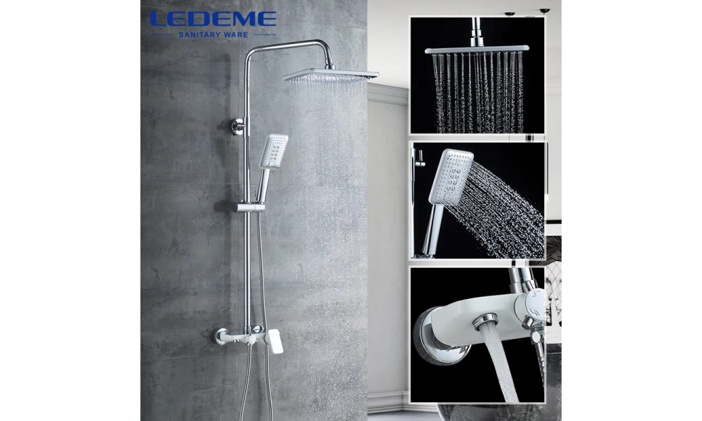 Душевая система Ledeme L2421W имеет потрясающий современный дизайн с белым и хромированным покрытием. Эта модель получила красивые лейки, которые будут по душе любому пользователю, а механический однорычажный смеситель со встроенным изливом поможет набрать ванную при необходимости.