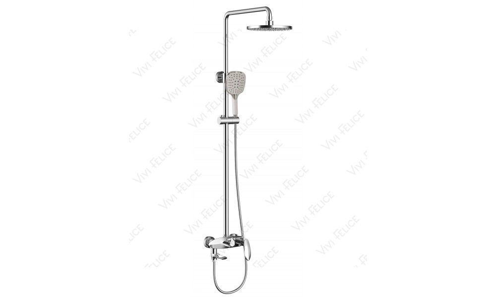 Душевая система Vivi Felice 9060 в хромированном цвете выполнена из первоклассной латуни, устойчивой к коррозии, что является гарантией высокого качества и долговечности изделия. В комплект входят: крепления, эксцентрики, настенный держатель, душевой шланг, душевая лейка, аэратор, дивертор.