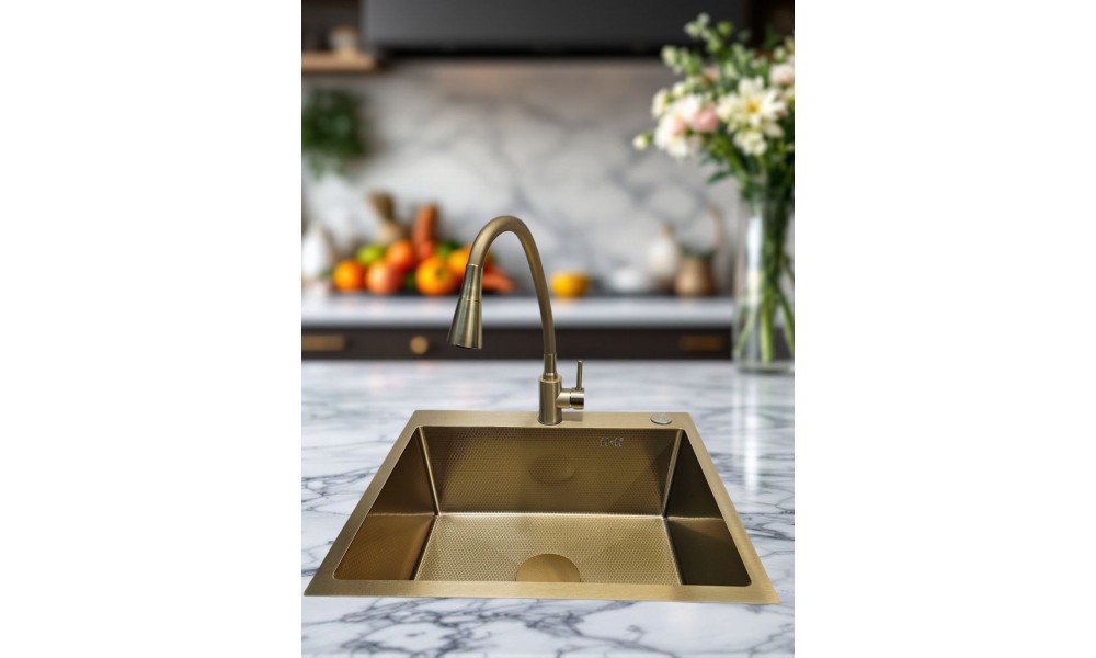 Комплект Кухонная мойка Fmark FSC5545C, Матовое-золото + Смеситель для кухни Savol S-3002CM-07, Матовое-золото