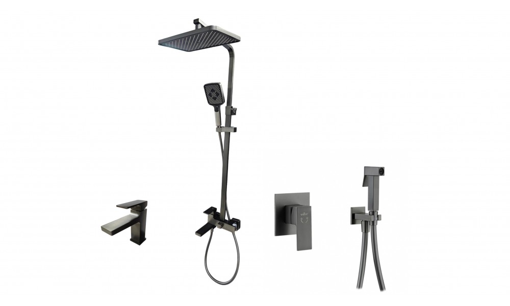 Комплект Душевая система V393562-G + Смеситель для умывальника V393511-G + Встраиваемый гигиенический душ V393553-G, Оружейная сталь