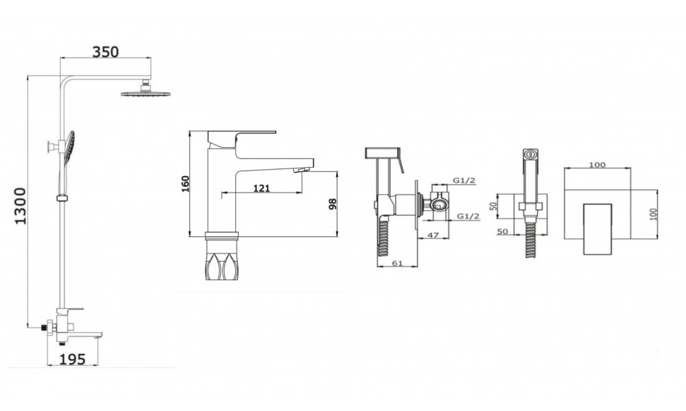 | Тип | Смеситель для умывальника, Душевая система, Встраиваемые гигиенический душ |