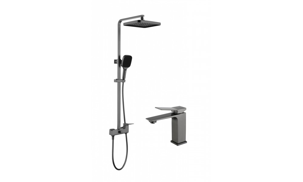 Комплект Душевая система GZ05162-Q + Смеситель для умывальника GZ05111-Q, Оружейная сталь