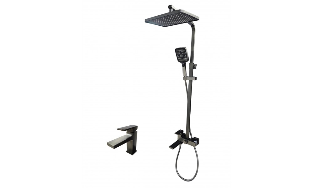 Комплект Душевая система V393562-G + Смеситель для умывальника V393511-G, Оружейная сталь