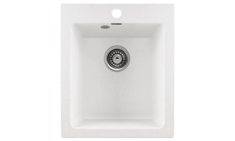 Мойка кухонная из искусственного камня GERHANS A10-18 (белая), длиной 42.5 см; шириной 50.5 см; размер чаши 35.5 см х 39.5 см; и глубиной чаши 20 см. Гарантия 10 лет.