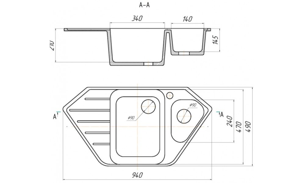 Мойка кухонная из искусственного камня GERHANS E10-25 (оникс), длиной 94 см; шириной 49 см; размер чаши 34 см х 47 см; и глубиной чаши 21 см. Гарантия 10 лет.
