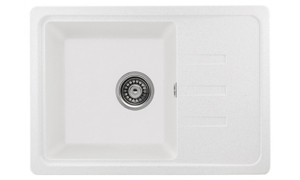 Мойка кухонная из искусственного камня GERHANS B15-18 (белая), длиной 60 см; шириной 45.5 см; размер чаши 34 см х 39 см; и глубиной чаши 18 см. Гарантия 10 лет.