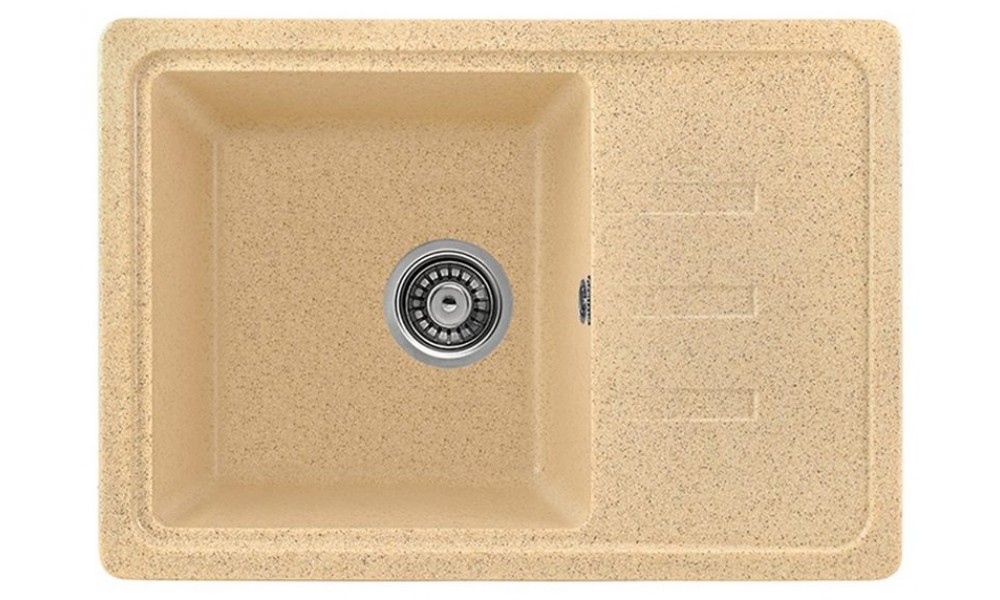 Мойка кухонная из искусственного камня GERHANS B15-21 (песок), длиной 60 см; шириной 45.5 см; размер чаши 34 см х 39 см; и глубиной чаши 18 см. Гарантия 10 лет.
