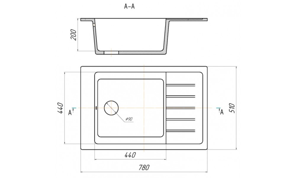 Мойка кухонная из искусственного камня GERHANS B28-24 (графит), длиной 78 см; шириной 51 см; размер чаши 44 см х 44 см; и глубиной чаши 20 см. Гарантия 10 лет.