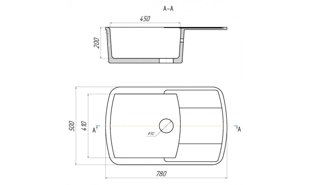 Мойка кухонная из искусственного камня GERHANS B29-24 (графит), длиной 78 см; шириной 50 см; размер чаши 45 см х 41 см; и глубиной чаши 20 см. Гарантия 10 лет.