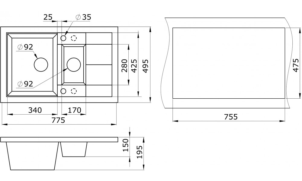 | Размер чаши, мм | 340х425,170х280 |