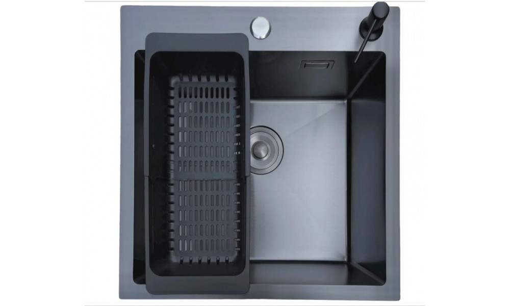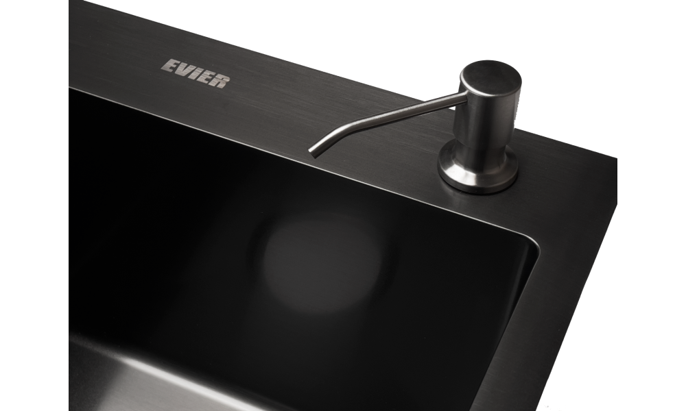 Кухонная мойка из нержавеющей стали Evier E4848B, врезная на столешницу/врезная вровень со столешницей, размеры: 48х48 см. размер чаши: 38х43 см. глубина чаши: 22 см. Цвет мойки: Графит