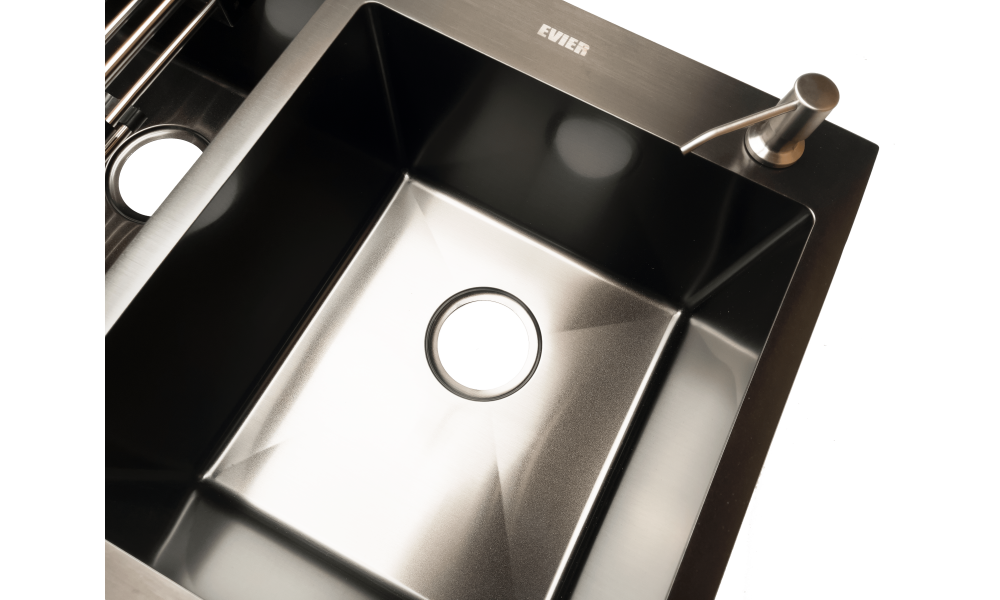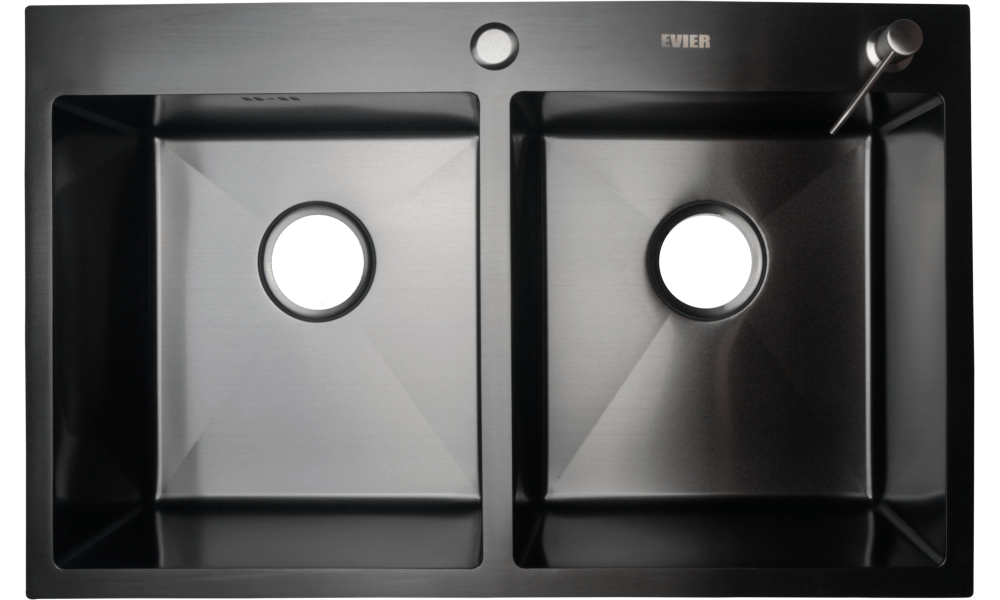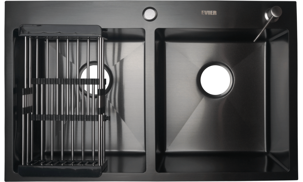 Кухонная мойка из нержавеющей стали Evier E7848-2B, врезная на столешницу/врезная вровень со столешницей, размеры: 78х48 см. размер чаши: 38х35,2 см. глубина чаши: 22 см. Цвет мойки: Графит