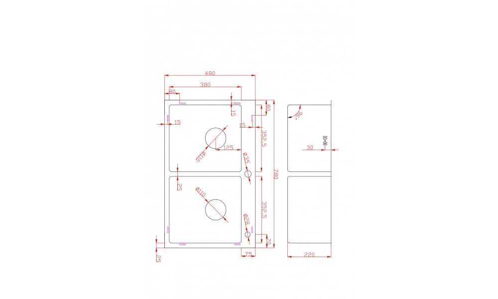 | Ширина мойки, см | 48 см |