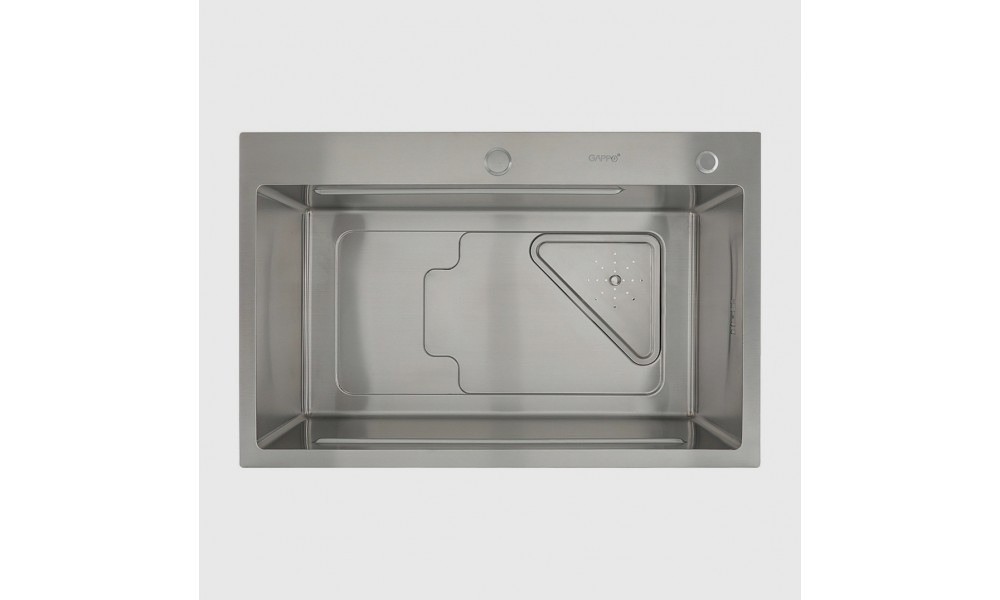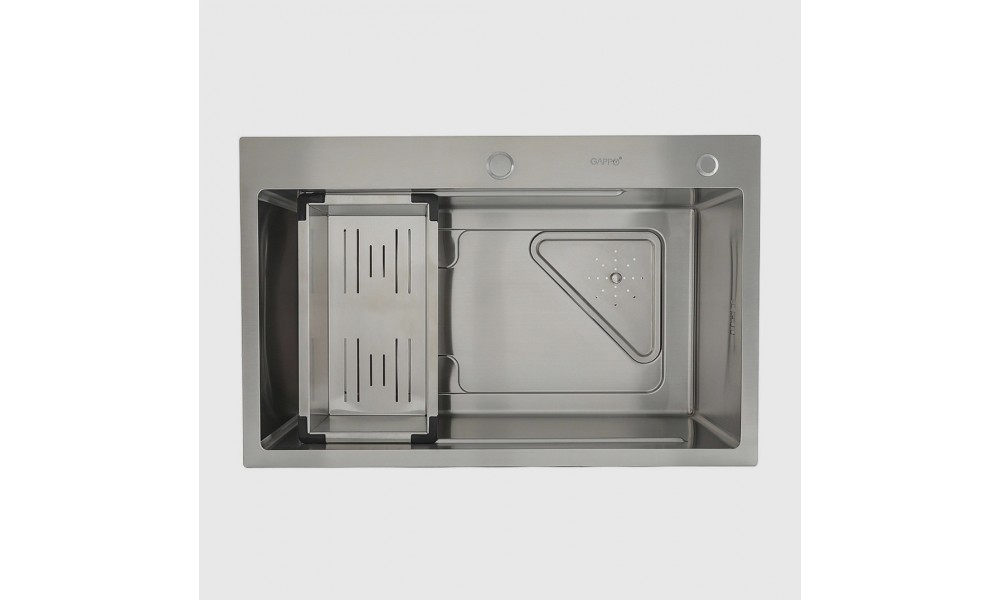 Кухонная мойка из нержавеющей стали Gappo GS7246, Цвет мойки: Стальной. Толщина 3 мм бортики, 0.8 мм чаша, тыльная сторона мойки покрыта вибропоглощающим (прорезиненным) материалом и специальной грунтовкой, чтобы предотвращать шум, размер мойки: 72х46 см. размер чаши: 46х67 см. глубина чаши: 21,5 см.