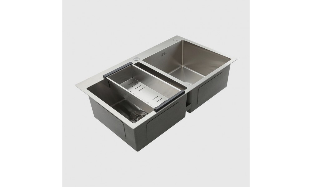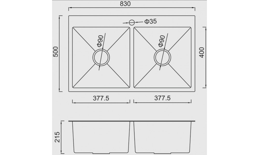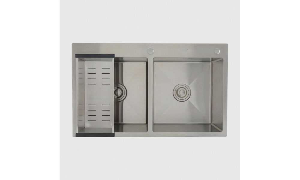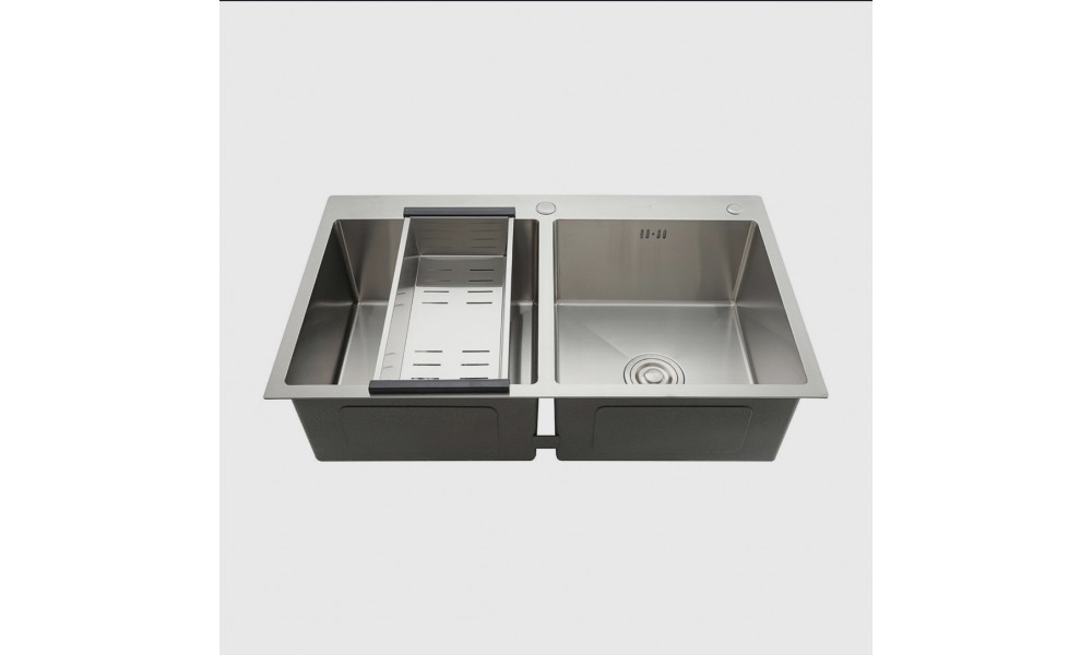 Кухонная мойка на две чаши из нержавеющей стали Gappo GS8350, Цвет мойки: Стальной. Толщина 3 мм бортики, 0.8 мм чаша, тыльная сторона мойки покрыта вибропоглощающим (прорезиненным) материалом и специальной грунтовкой, чтобы предотвращать шум, размер мойки: 83х50 см. размер чаши: 40х37,75 см. глубина чаши: 21,5 см.