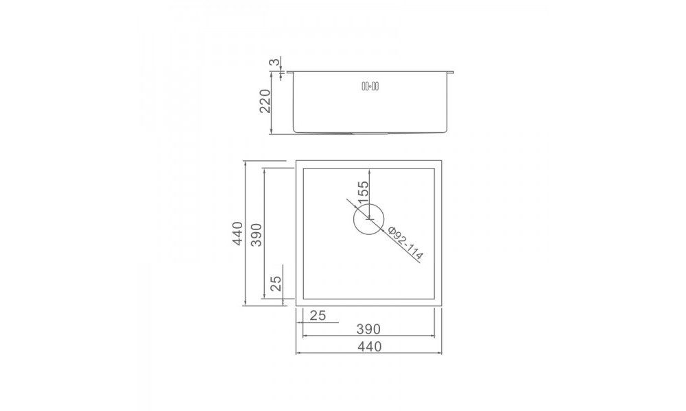 Кухонная мойка из нержавеющей стали Gerhans K34444, врезная на столешницу/врезная вровень со столешницей, размеры: 44х44 см размер чаши: 39х39 см глубина чаши: 22 см. Цвет мойки: Стальной