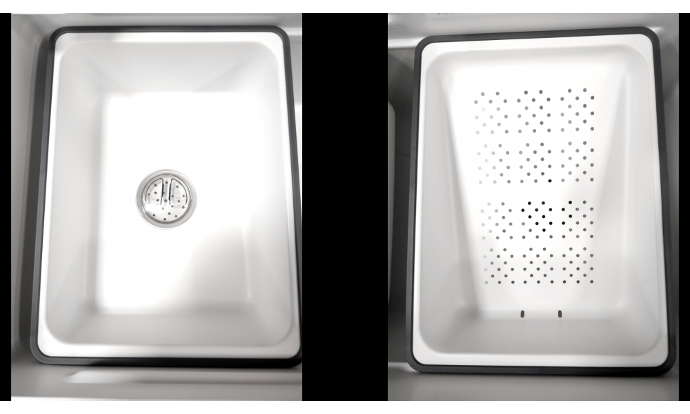 -благодаря модульной структуре мойки, можно менять местами чаши, устанавливать разделочную доску в разных положениях, что значительно экономит место на кухне и позволяет избежать лишних загрязнений