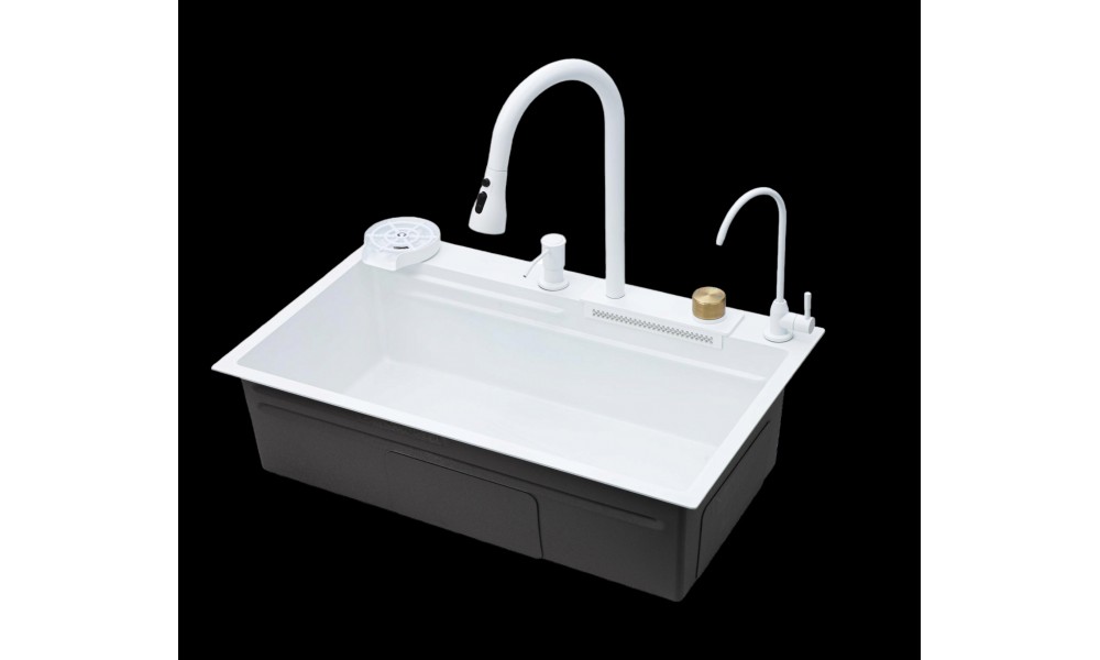 Многофункциональная кухонная мойка из нержавеющей стали Savol S-SC003W, Цвет мойки: Белый, Толщина 3 мм бортики, 1.2 мм чаша, тыльная сторона мойки покрыта вибропоглощающим (прорезиненным) материалом и специальной грунтовкой, чтобы предотвращать шум, размер мойки: 75х46 см. размер чаши: 35 х70 см. глубина чаши: 22 см.