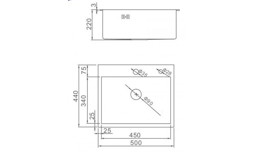 Кухонная мойка из нержавеющей стали Wisent W35044D в стальном цвете с декорированной поверхностью в виде сот. Толщина 3 мм бортики, 1.2 мм чаша, тыльная сторона мойки покрыта шумоизолирующим слоем. размер мойки: 50х44 см. размер чаши: 45х34 см. глубина чаши: 22 см.