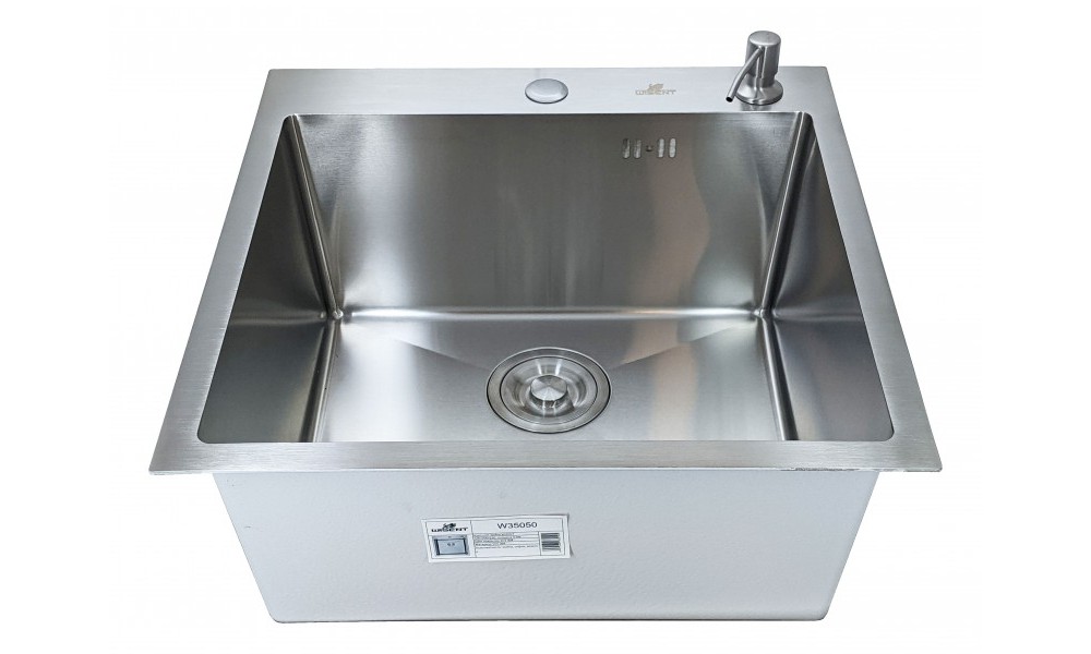 Кухонная мойка из нержавеющей стали Wisent W35050, Толщина 3 мм бортики, 1.2 мм чаша, тыльная сторона мойки покрыта шумоизолирующим слоем. размер мойки: 50х50 см. размер чаши: 45х40 см. глубина чаши: 22 см.