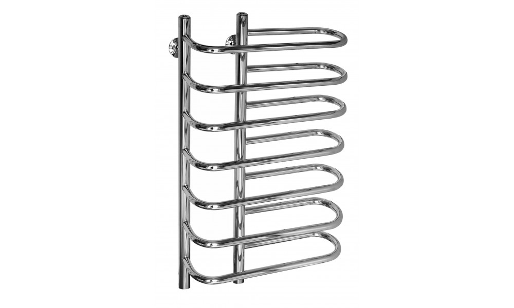 Полотенцесушитель Бридж (нижн.подв., 1" резьба) 160 x 700 x 450 / 7 в форме Ф-образный имеет нижнее подключение с диаметром подключения 1". В комплект к полотнецесушителю входит 4 крепления к стене, краны Маевского - 1 шт., паспорт (гарантийный талон)