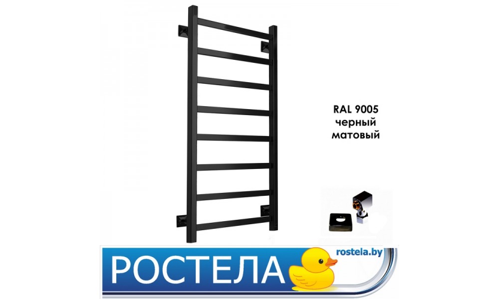 Полотенцесушитель Экспи Квадро V 30 (нижн.подв. 1/2") черный Ral 9005 500 х 800 / 7 в форме лесенки имеет нижнее подключение с диаметром подключения 1..