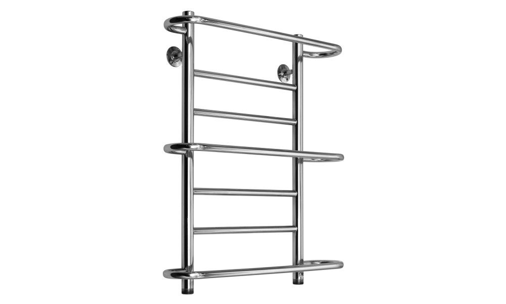 Полотенцесушитель ТРИО (нижн.подв., 1" резьба) 400 x 700 x 600 / 7 в форме лесенки имеет нижнее подключение с диаметром подключения 1". В комплект к полотнецесушителю входит 4 крепления к стене, краны Маевского - 1 шт., паспорт (гарантийный талон)