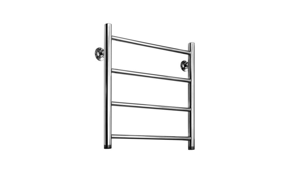 Полотенцесушитель Виктория (нижн,подв, 1" резьба) 500 x 600 / 4 в форме лесенки имеет нижнее подключение с диаметром подключения 1". В комплект к полотнецесушителю входит 2 крепления к стене, краны Маевского - 1 шт., паспорт (гарантийный талон)