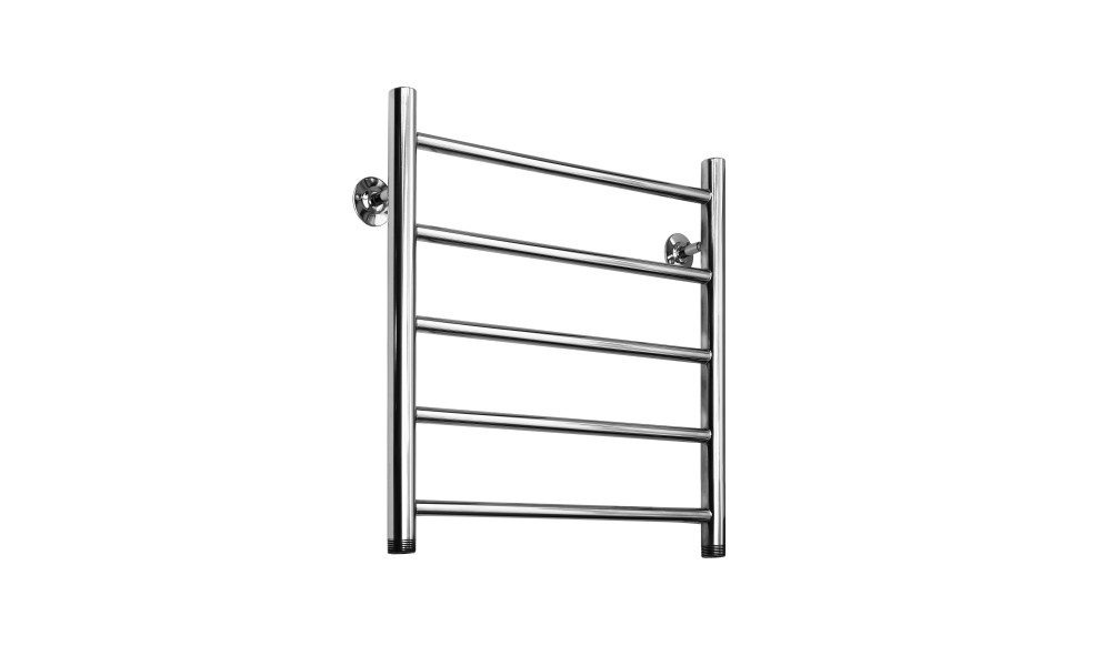 Полотенцесушитель Виктория (нижн,подв, 1" резьба) 500 x 600 / 5 в форме лесенки имеет нижнее подключение с диаметром подключения 1". В комплект к полотнецесушителю входит 2 крепления к стене, краны Маевского - 1 шт., паспорт (гарантийный талон)