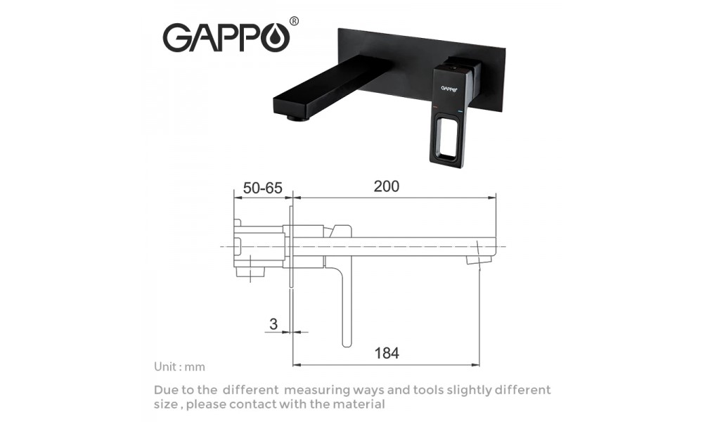 Смеситель для умывальника встраиваемый Gappo G1017-16 (Чёрный)