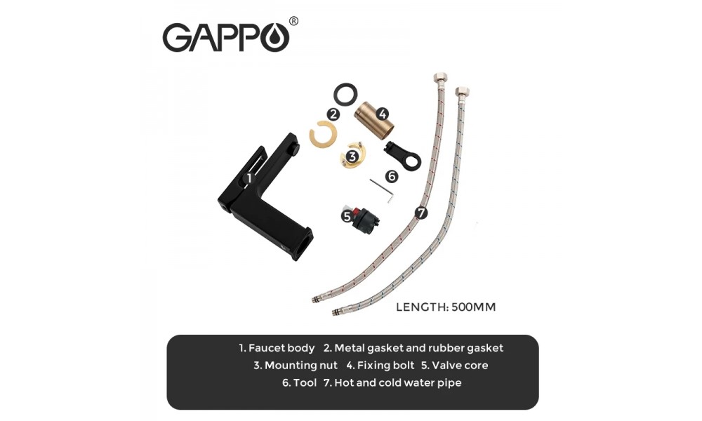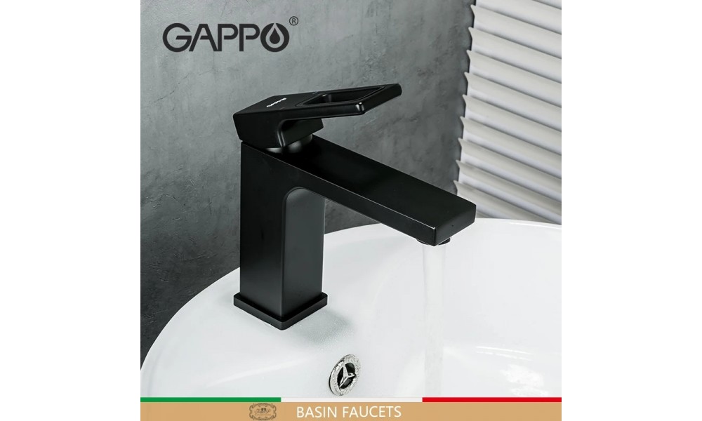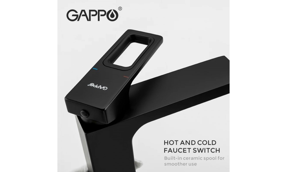Смеситель для умывальника Gappo G1017-6, однорычажный, цвет: Черный, материал: Латунь.