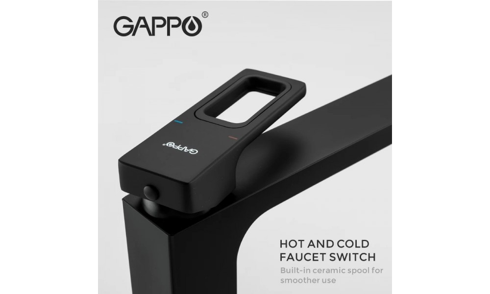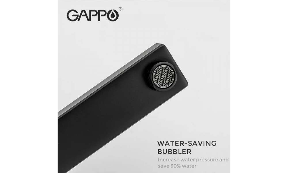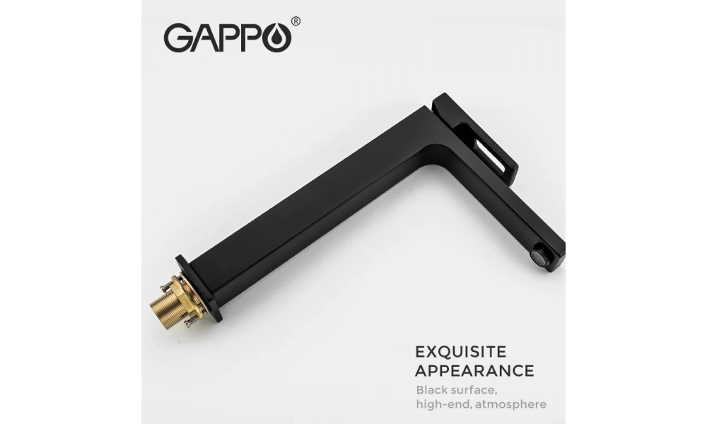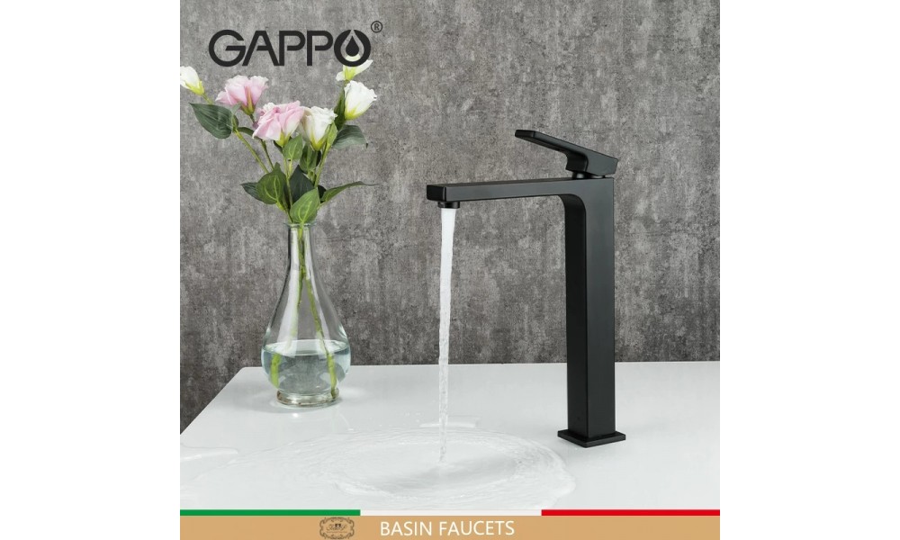 Смеситель для умывальника высокий Gappo G1017-62 с каскадным носом, однорычажный, цвет: Черный, материал: Латунь.