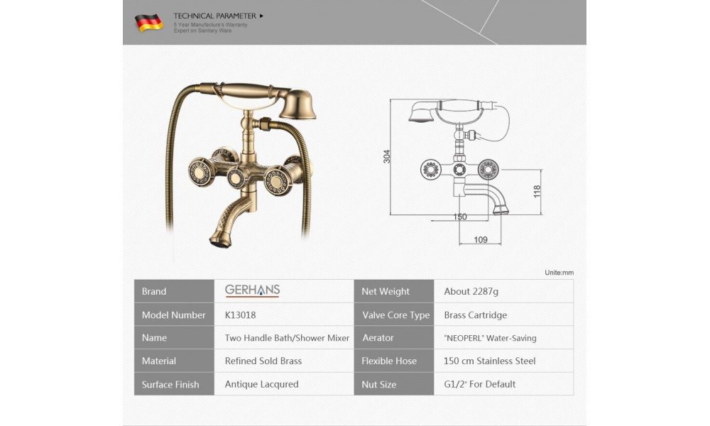 Элитный смеситель для ванны в бронзовом цвете K13018 от бренда Gerhans в стиле ретро.