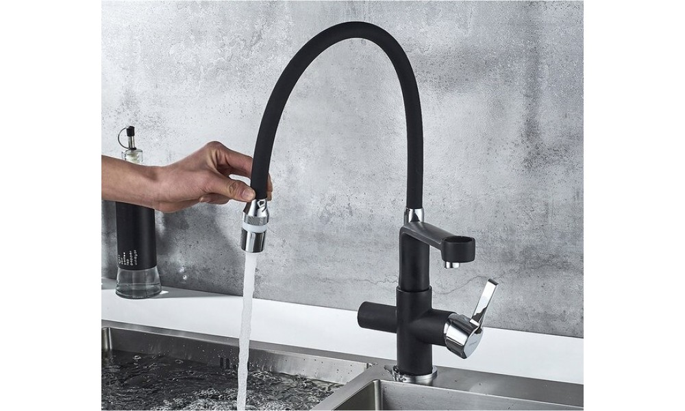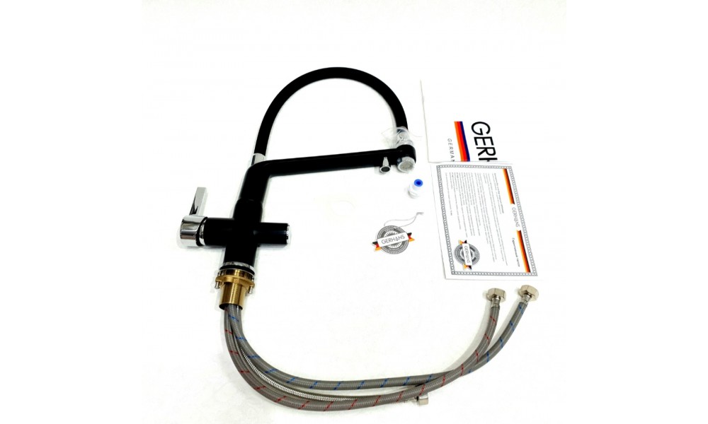 Смеситель для кухонной мойки на две воды с гибким силиконовым носом-изливом и возможностью подключения фильтра питьевой воды Gerhans K14090B-2.