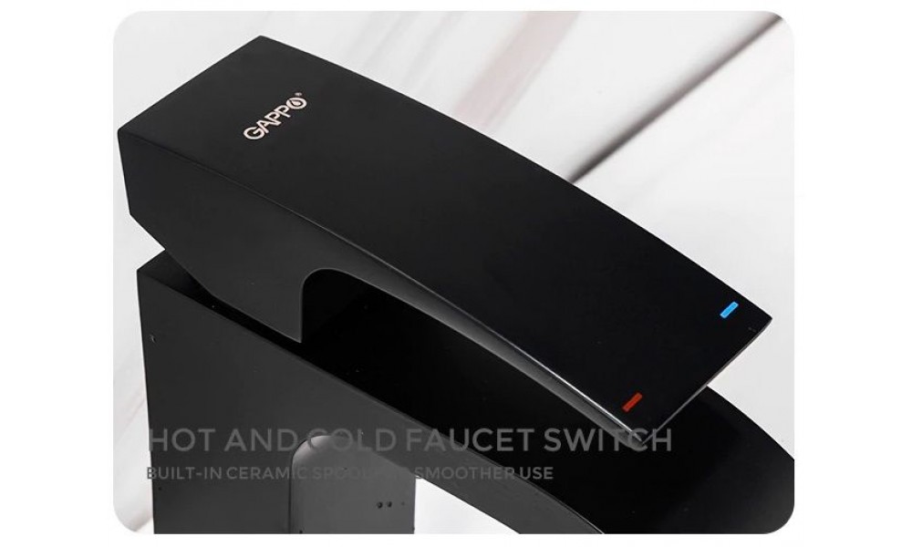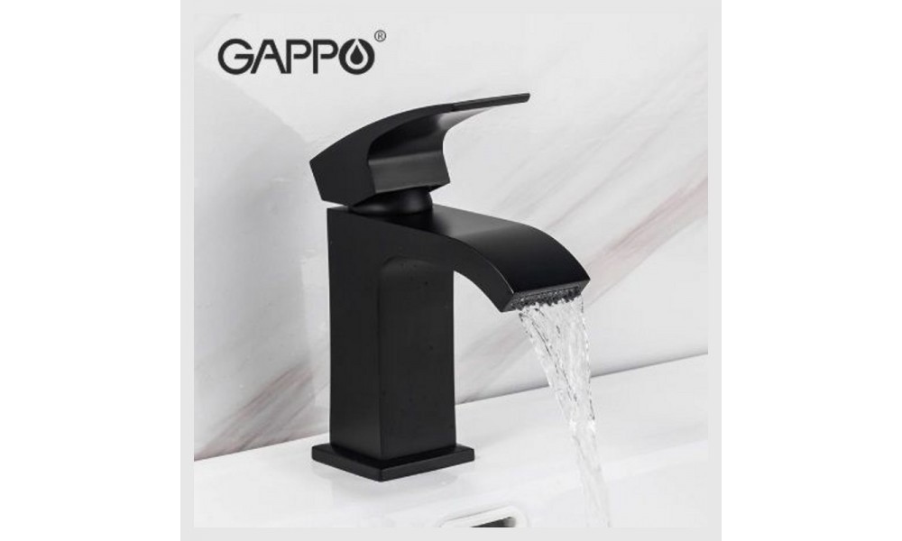 Смеситель для умывальника Gappo G1007-6 с каскадным носом, однорычажный, цвет: Черный, материал: Латунь.