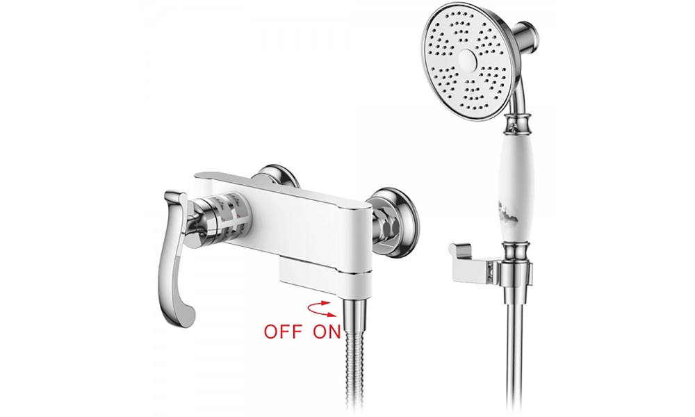 Элитный смеситель для ванны с коротким изливом K13026W Gerhans в комбинации хрома и белого. Переключение режимов производится поворотом носика. Комплектуется качественными эксцентриками из латуни. Силиконовый шланг для душа не царапает корпус и не создаёт излишнего шума.