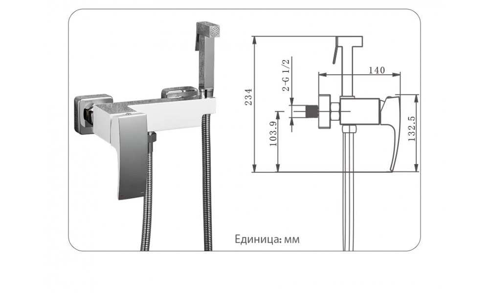 Смеситель настенный с гигиенической лейкой для биде Gappo G2007-8 Белый-Хром