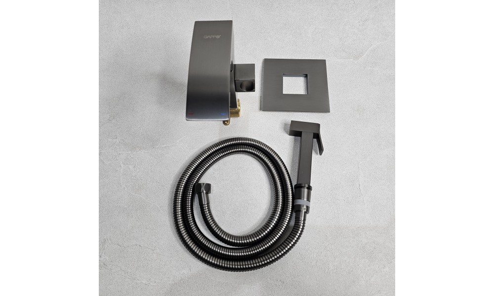 Встраиваемый гигиенический душ Gappo G7207-9 в цвете Оружейная сталь. Гарантия: 5 лет на корпус и хромированное покрытие, 2 года на цветные покрытия (Белый, Чёрный, Сатин, Оружейная сталь).