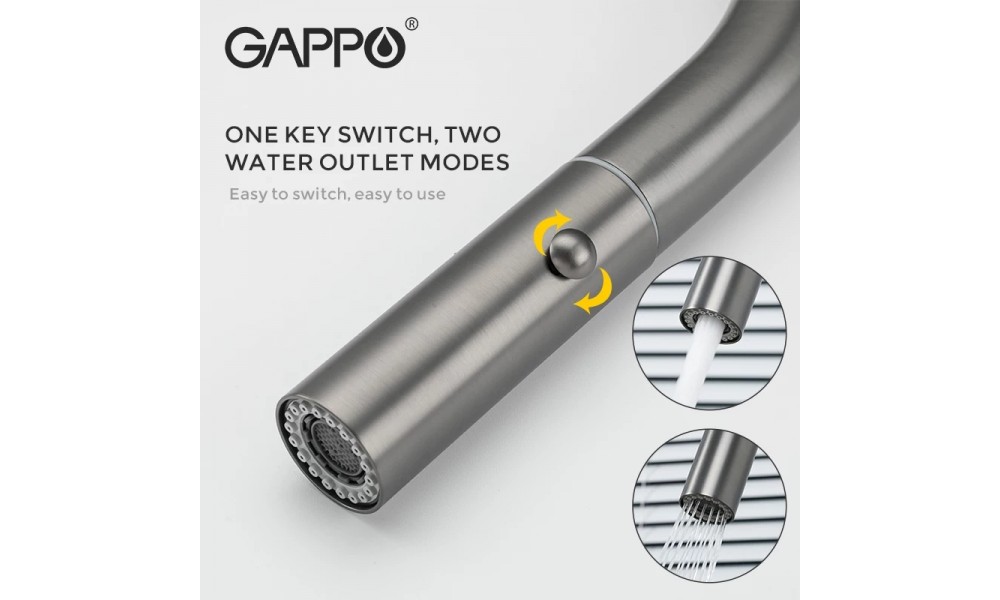 Смеситель для кухонной мойки с выдвижным изливом (Лейкой) имеющая два режима (2в1) "Дождик" и "Струя" Gappo G4398-41