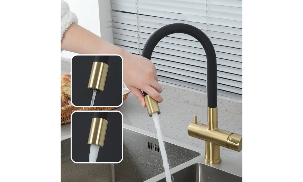 Смеситель для кухонной мойки с магнитной фиксацией силиконового излива к смесителю, два режима (струи) подачи обычной воды, аэратор поворотный с переключателлем Gappo G4398-83