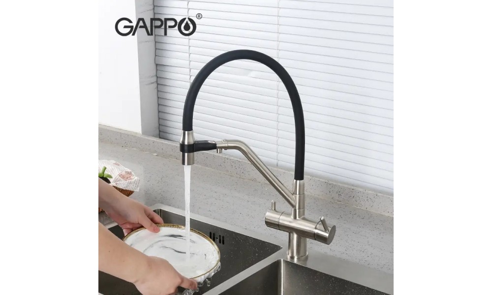 Смеситель для кухонной мойки с магнитной фиксацией силиконового излива к смесителю, два режима (струи) подачи обычной воды, аэратор поворотный с переключателлем Gappo G4398-85