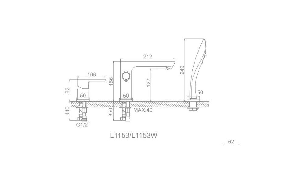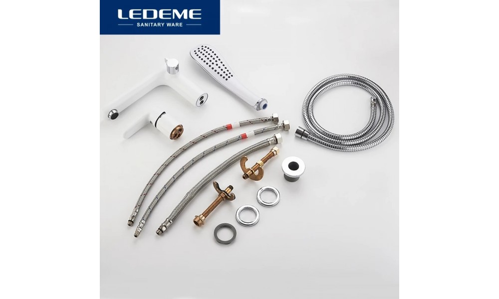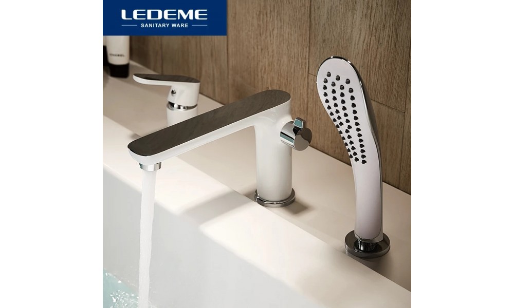 Смеситель на борт ванны 3в1 Ledeme L1153W комбинированный Белый/Хром