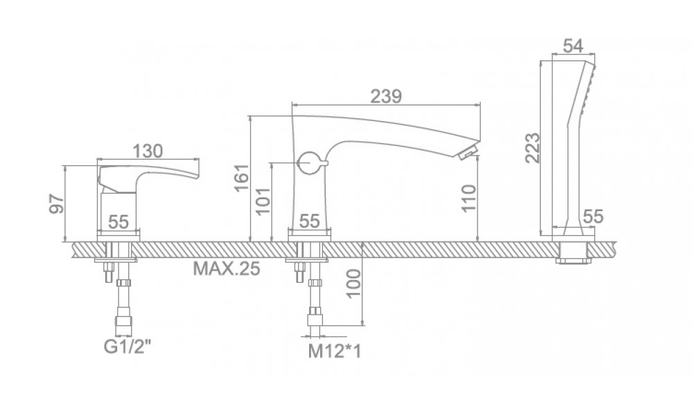 Смеситель на борт ванны 3в1 Ledeme L1198